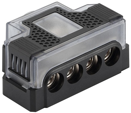 DB-1044 Дистрибьютор питания на 4 линии для минусовой силовой проводки аудиосистемы. Вход 1 х 0(4) AWG - Выход 3 х 4(8) AWG. Фиксация кабеля – прижимной винт под шестигранник. Для плотного и надежного контакта рекомендуется использовать контактные кабельные гильзы.