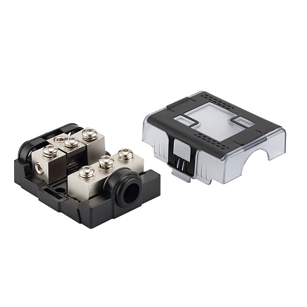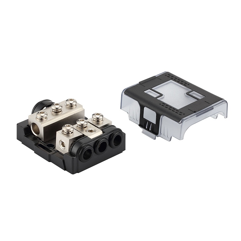 FHM-1034 Держатель предохранителей miniANL – дистрибьютор питания на 3 защищенные линии силовой проводки аудиосистемы. Вход 1 х 0(4) AWG - Выход 3 х 4(8) AWG Фиксация кабеля – прижимной винт под шестигранник. Для плотного и надежного контакта рекомендуется использовать контактные кабельные гильзы.